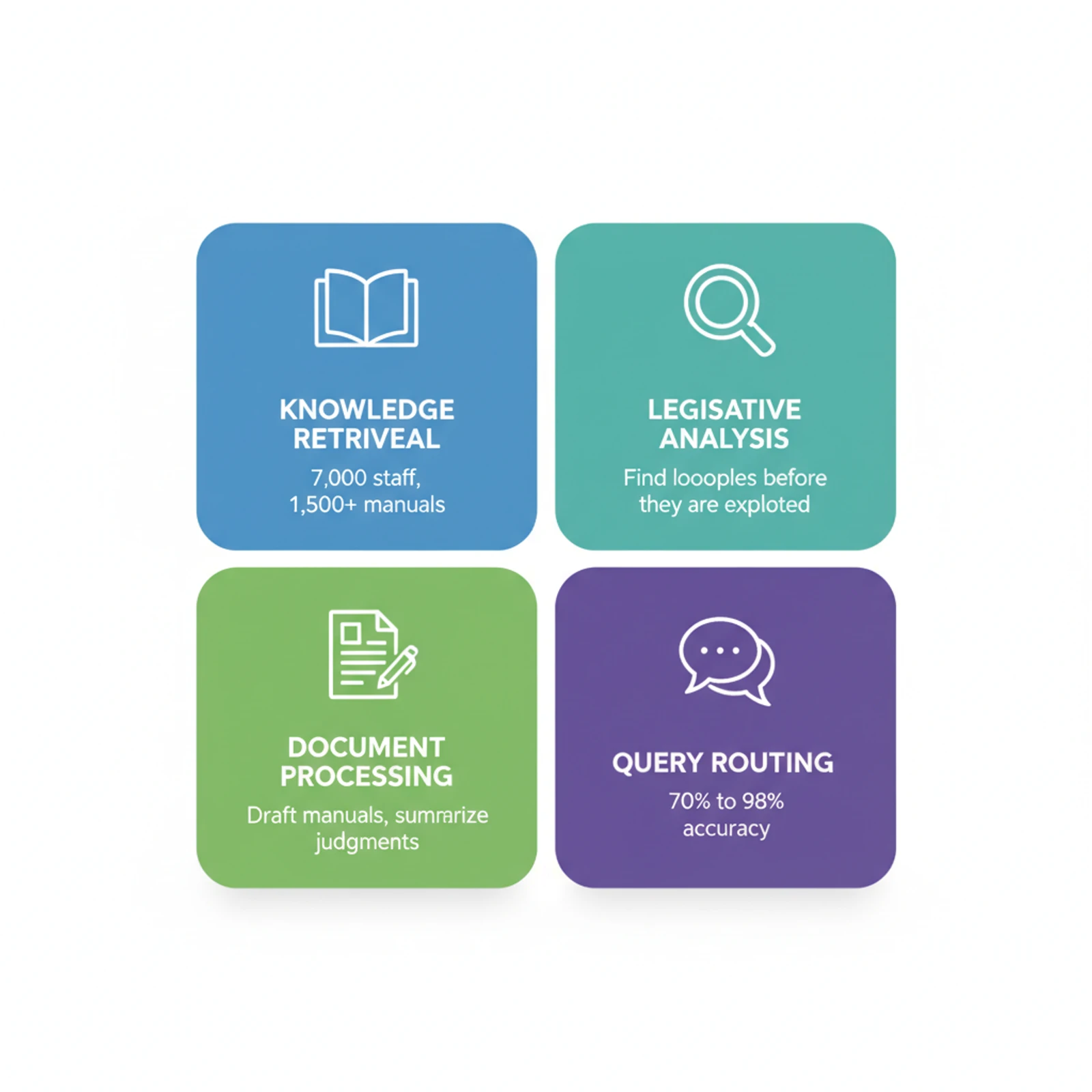 | Query routing accuracy | 70% to 98% | European tax authority |