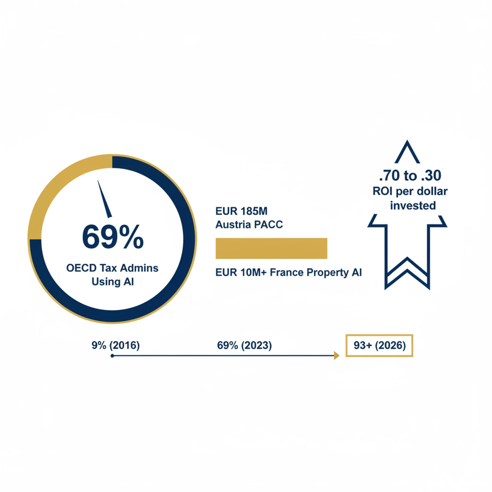 | OECD tax admins using AI | 69% (2023), up from 9% (2016) | Massive adoption curve |