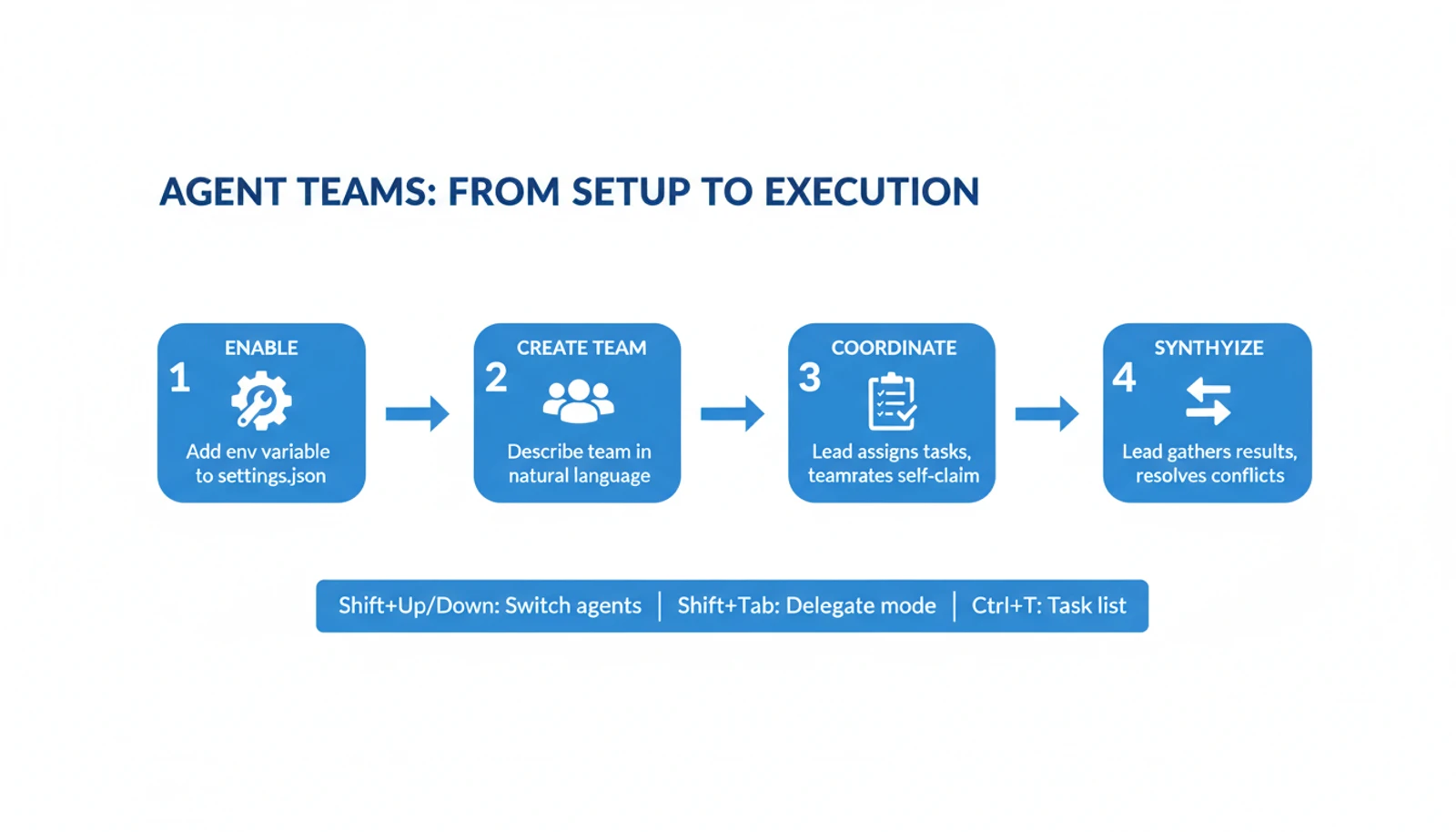 Shift+Tab): prevents the lead from duplicating work that teammates are already doing - Size tasks at 5–6 per teammate: too small and coordination overhead dominates; too large and agents run without check-ins