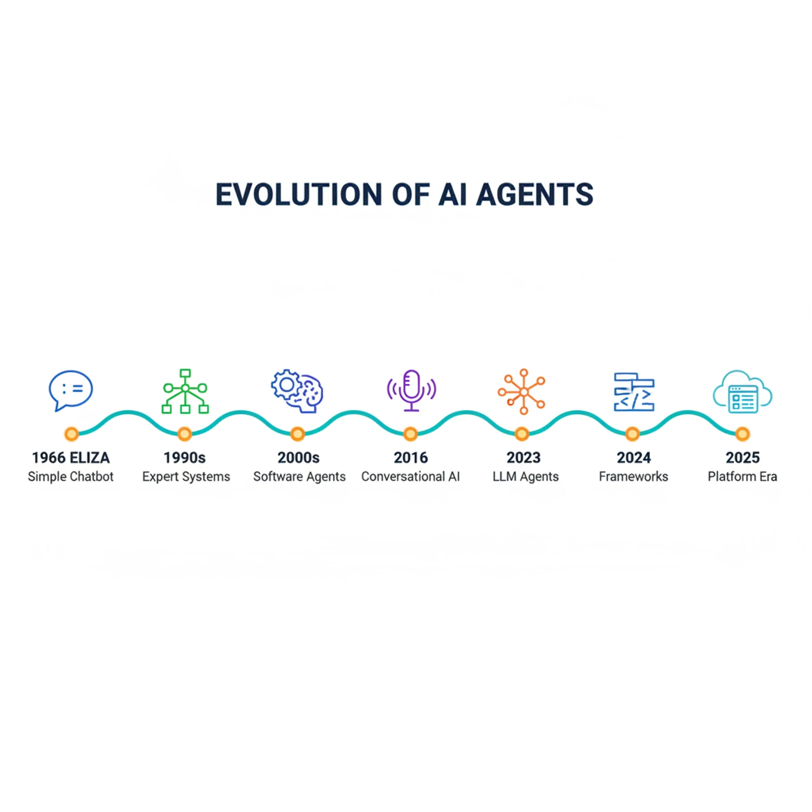 | 2025 | Platform Era | Every cloud vendor ships configurable agent builders. The "no-code agent" becomes a product category. |