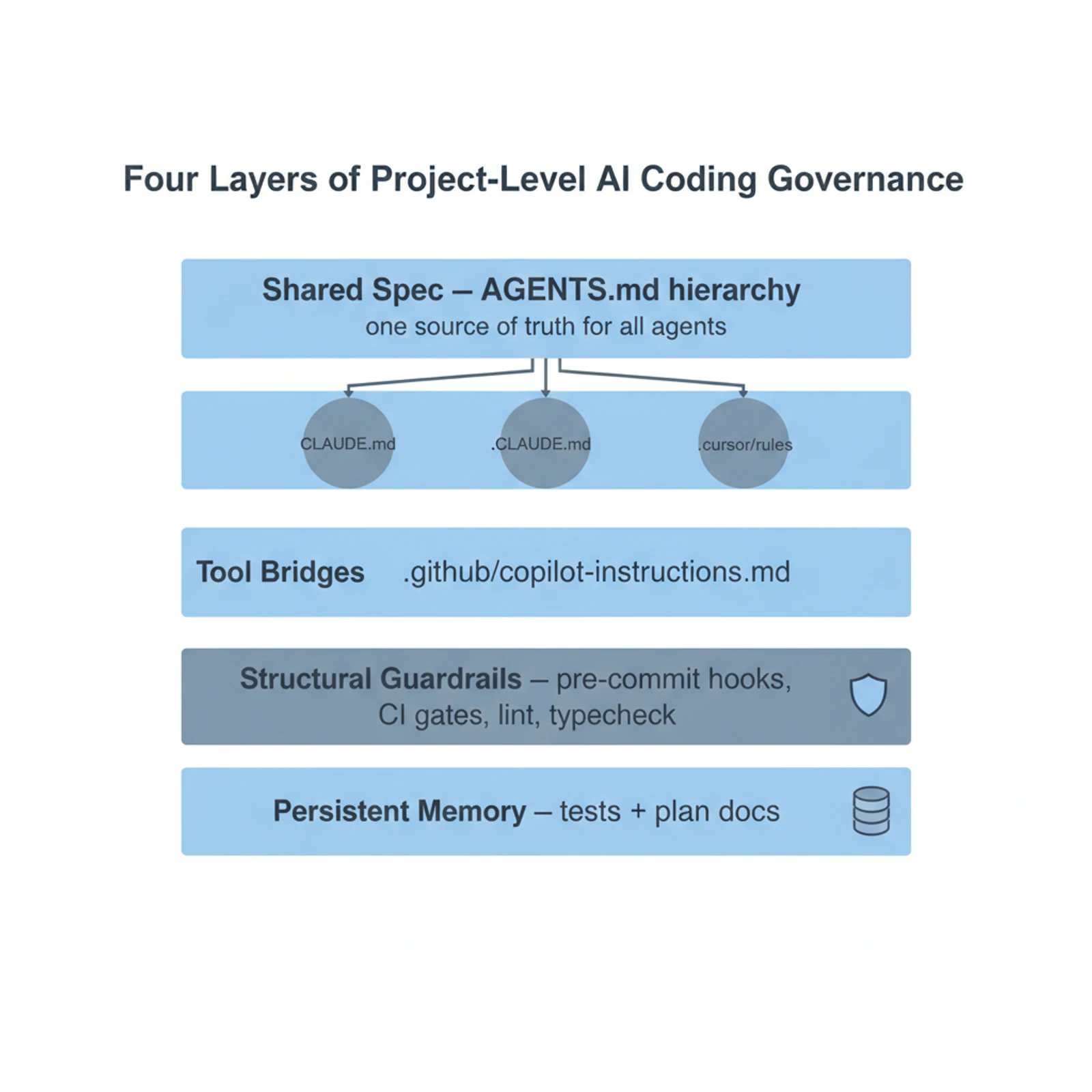 This isn't a productivity hack. It's not a new tool. It's the unglamorous realization that the only thing all your AI agents share is the codebase you're already paying for, and that's where governance has to live.