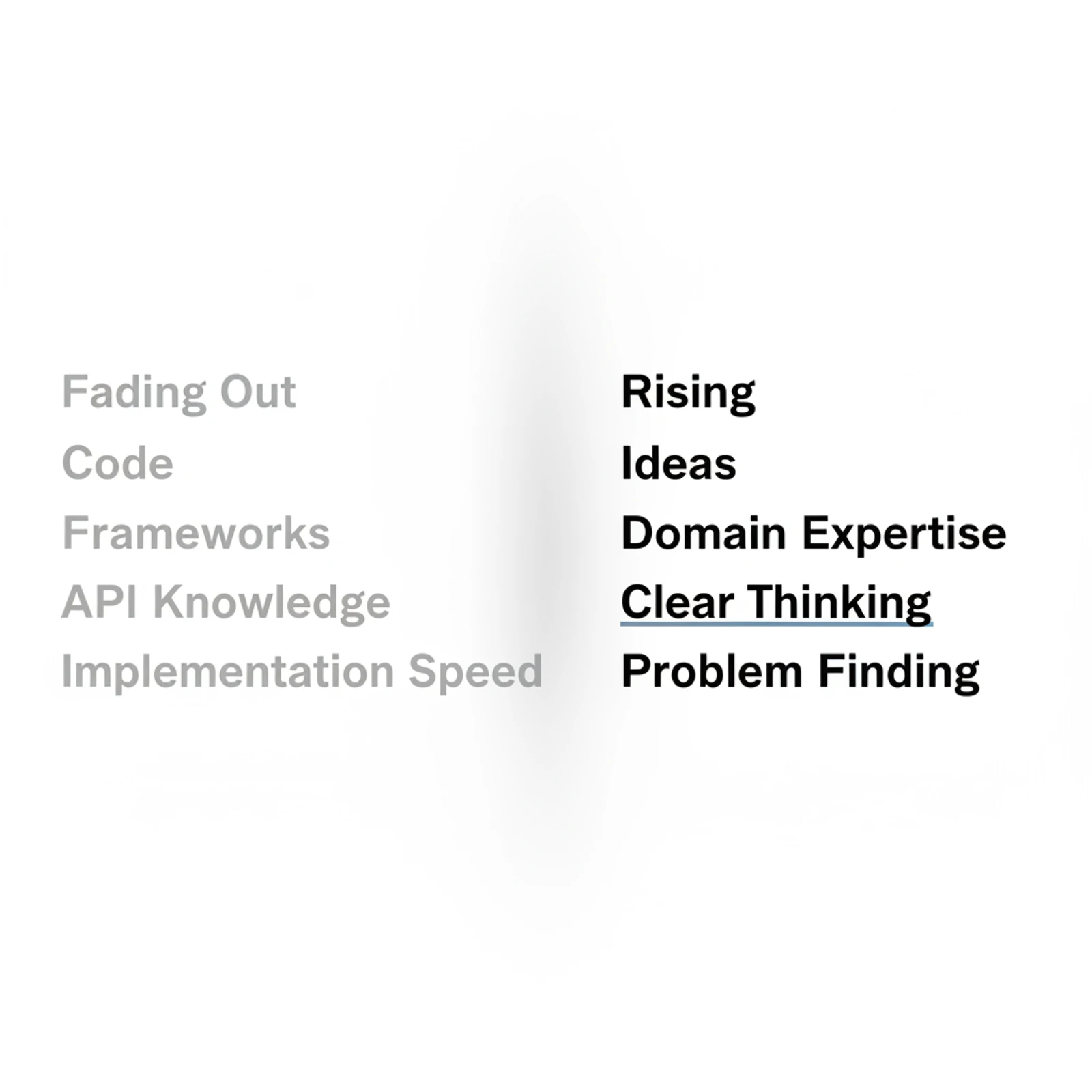 Which means the things that differentiate you are no longer technical. They're about your ideas — how clear your thinking is, how well you understand a problem domain, how precisely you can reason about what needs to exist and why. If you know an industry deeply, if you're an expert in some vertical, there are real opportunities. The person who understands the problem wins, because the building part is increasingly handled.